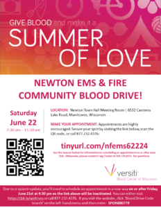 Appointments are highly encouraged. Please call 877-232-4376 or visit https://donate.wisconsin.versiti.org/donor/schedules/drive_schedule/263674 to schedule an appointment to donate.
